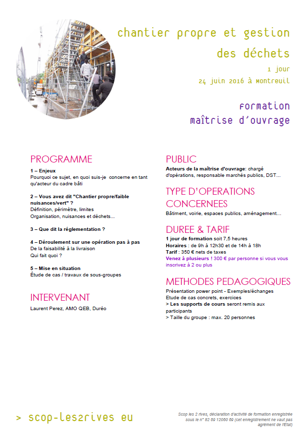 FORMATION COURTE - Chantier propre et gestion des déchets - 24 juin à Montreuil